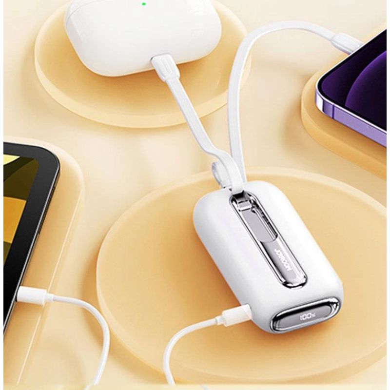 Joyroom mini powerbank 10000mAh Colorful Series 22.5W with 2 built-in USB C and Lightning cables white (JR-L012)