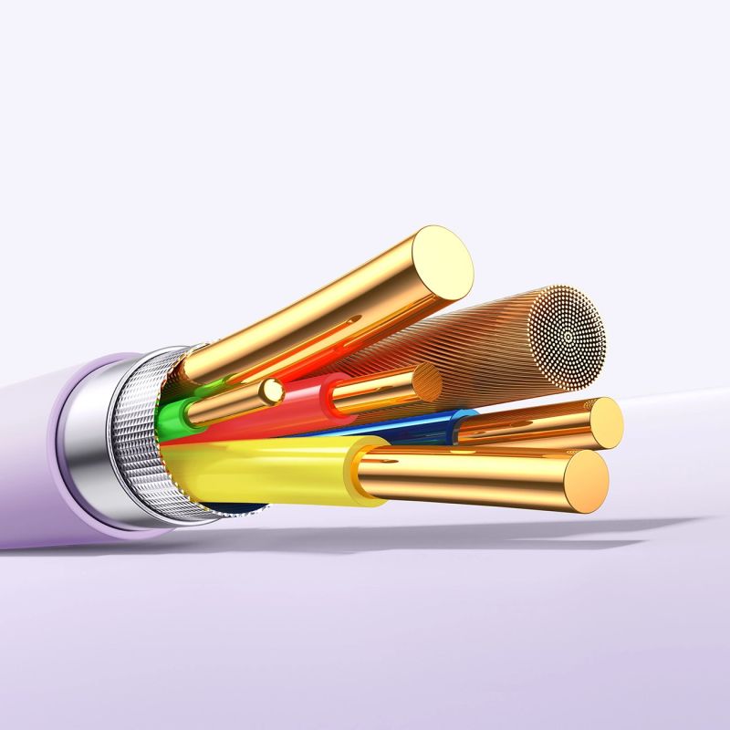 The purple finish gives the cable a modern look and makes it easy to find in a bag or on a desk. Functionality meets aesthetics here.