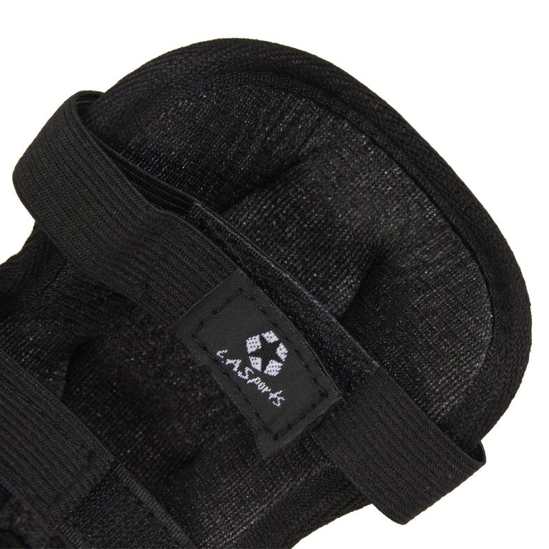 The JUNIOR protector set provides protection for these body parts without restricting movement. The knee and elbow protectors are attached with elastic Velcro straps, while the wrist protectors are secured with two non-stretch Velcro straps. The protectors stay in place while riding and adapt perfectly to the body. The entire set is packed in a practical mesh bag.