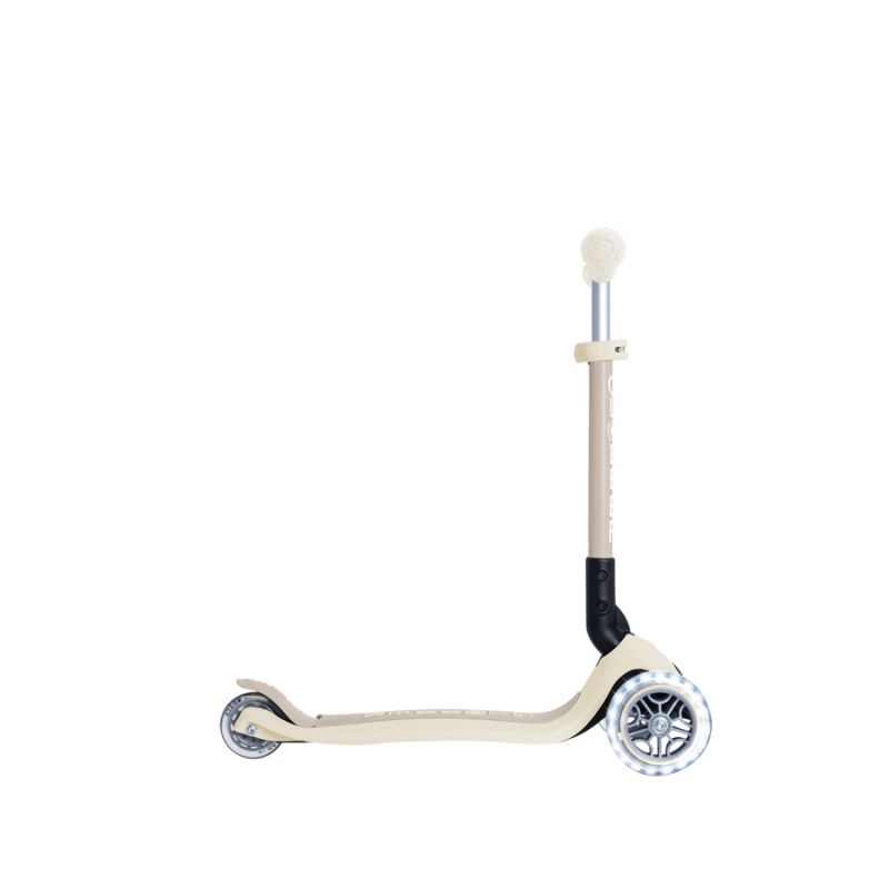 The JUNIOR FOLDABLE LIGHTS ECOLOGIC is a 3-wheeled, eco-friendly scooter for toddlers aged 2-6 that combines fun with environmental friendliness. Its construction uses 60% recycled plastic (GRS) and a wheat-straw blend* , ensuring high durability and safety.