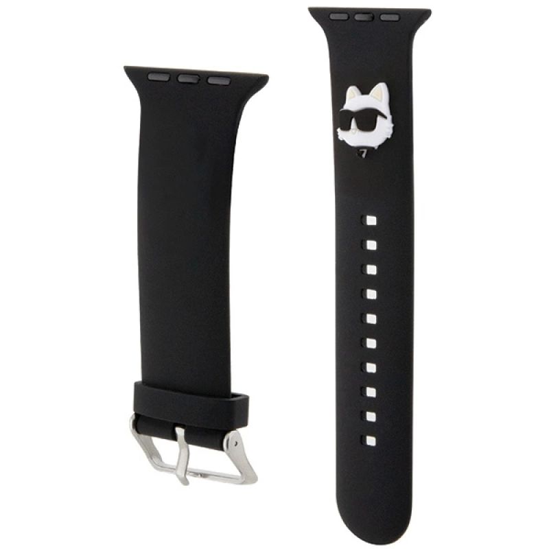 Collection 3D Rubber Choupette Head Type Apple Watch strap Material Silicone/Stainless Steel Color Black Compatibility Apple Watch 42/44/45/49 mmSeries 1/2/3/4/5/6/7/8/9/SE/SE2/Ultra/Ultra2