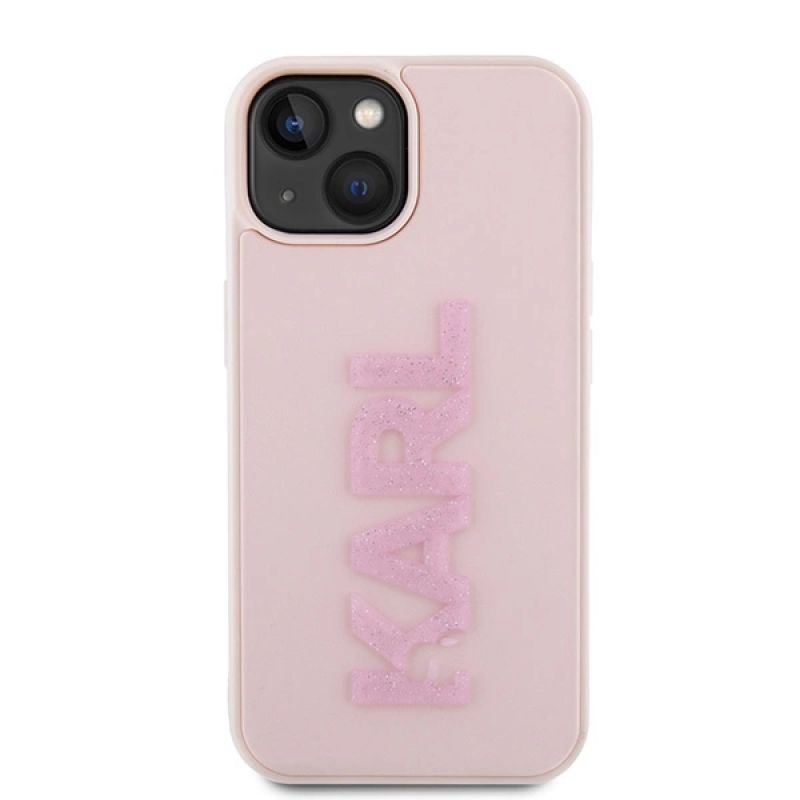 Karl Lagerfeld 3D Rubber Glitter Logo case for iPhone 15 Plus - pink