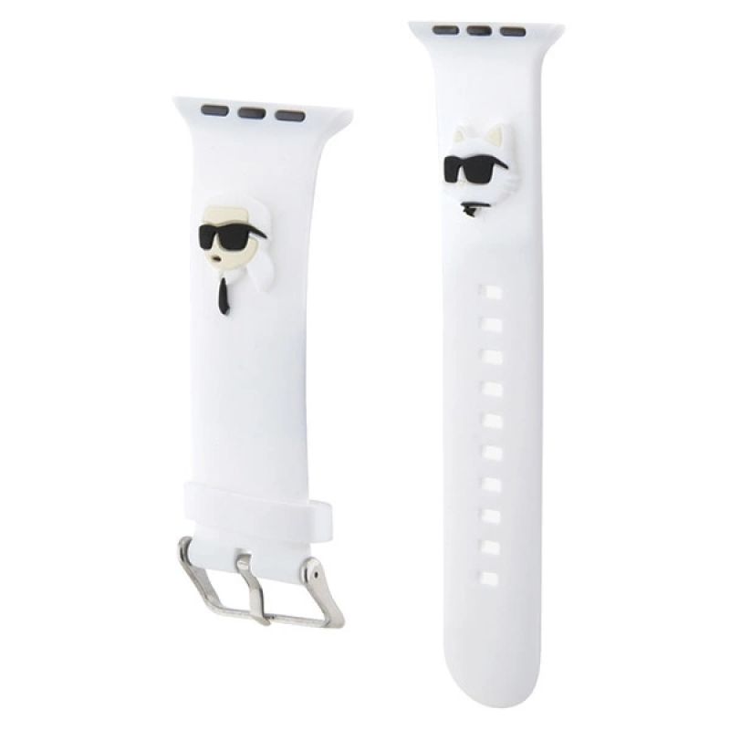 Collection 3D Rubber Karl&Choupette Head Type Apple Watch strap Material Silicone/Stainless Steel Color White Compatibility Apple Watch 38/40/41mmSeries 1/2/3/4/5/6/7/8/9/SE/SE2