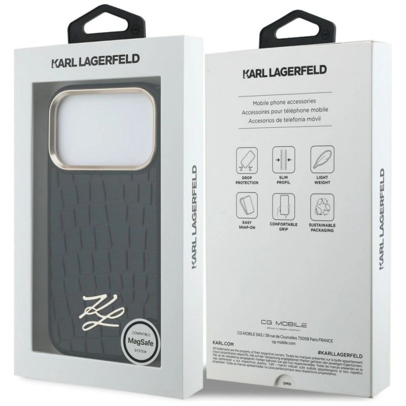 Collection Croco KL Script Logo MagSafe Type Hardcase Material TPU / PC / Eco-leather Color Black Compatibility iPhone 17 Pro| Name | Details |