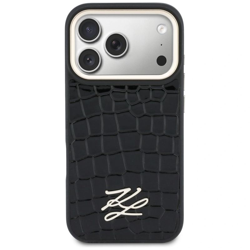 Karl Lagerfeld Croco KL Script Logo MagSafe Case for iPhone 17 Pro - Black