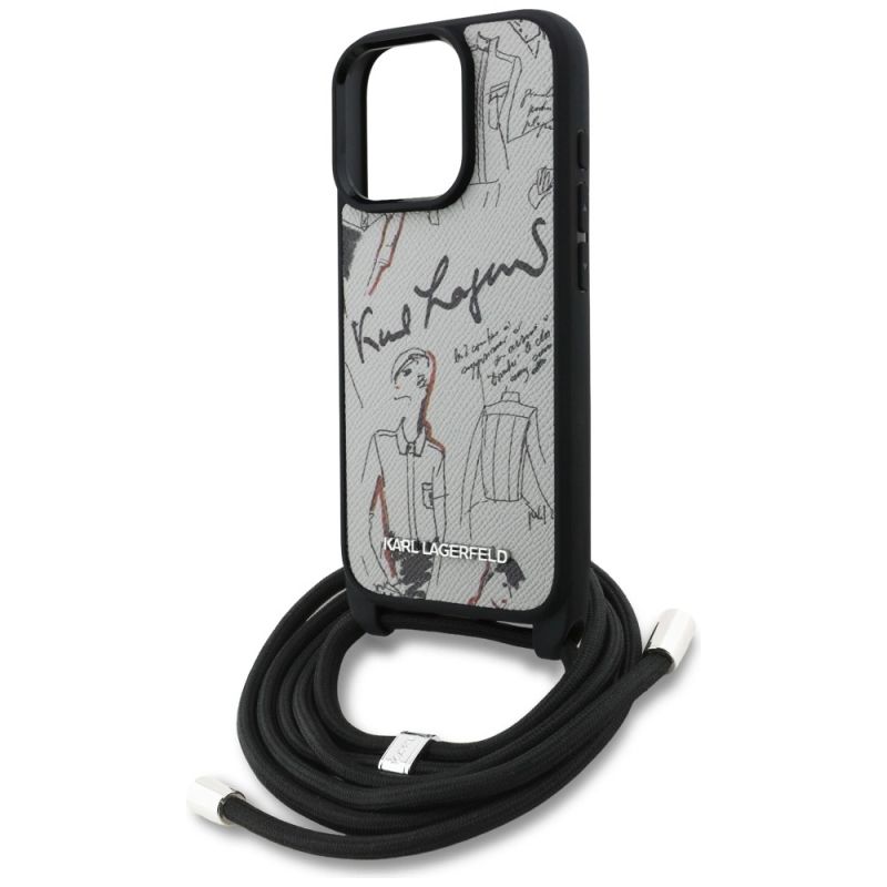 Collection Karl Lagerfeld Crossbody Grained Pattern & Logo Type Hardcase Material TPU / PC / Eco-leather Color Gray Compatibility iPhone 16 Pro 6.3"| Name | Details |