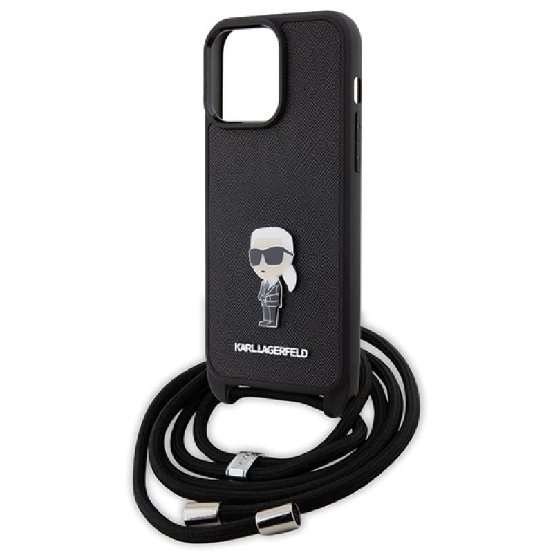 Karl Lagerfeld Crossbody Saffiano Monogram Metal Pin Karl & Choupette Case for iPhone 15 Pro Max - Black