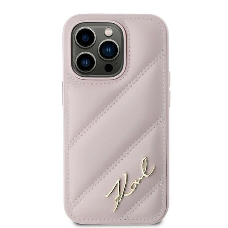 Karl Lagerfeld Diagonal Quilted Script case for iPhone 14 Pro - pink
