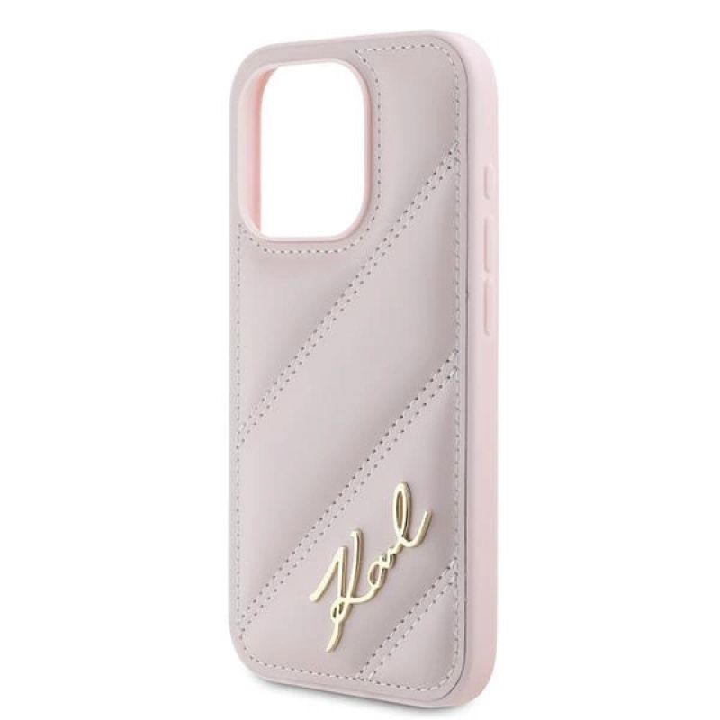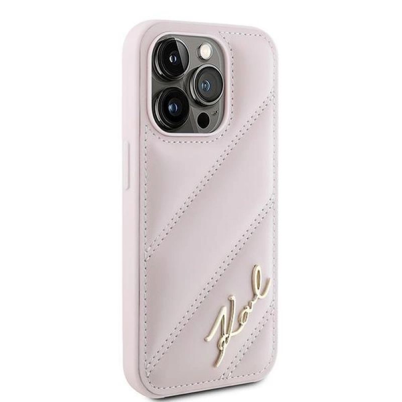 Karl Lagerfeld Diagonal Quilted Script case for iPhone 15 Pro Max - pink