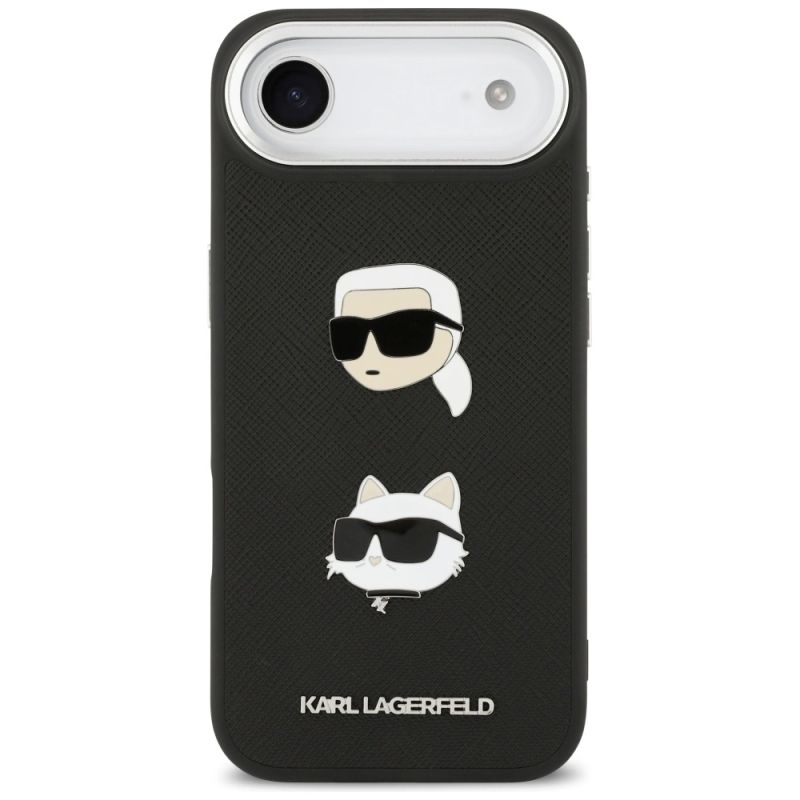 Karl Lagerfeld FW Grained Karl & Choupette Heads Pins & Logo iPhone Air Case - Black