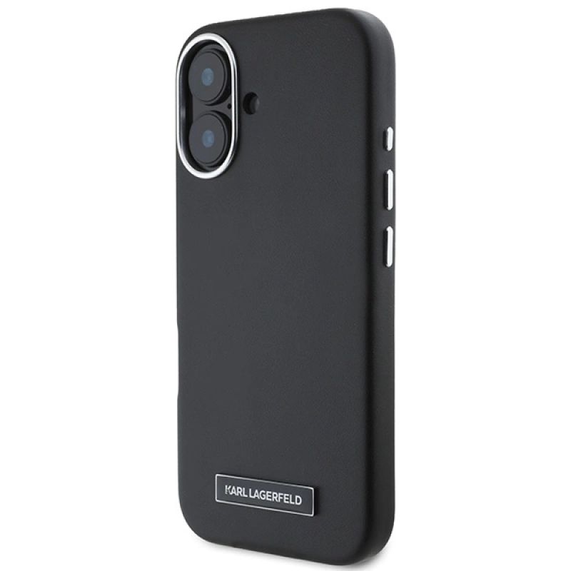 Karl Lagerfeld FW Metal Plate MagSafe iPhone 16 Plus Case - Black