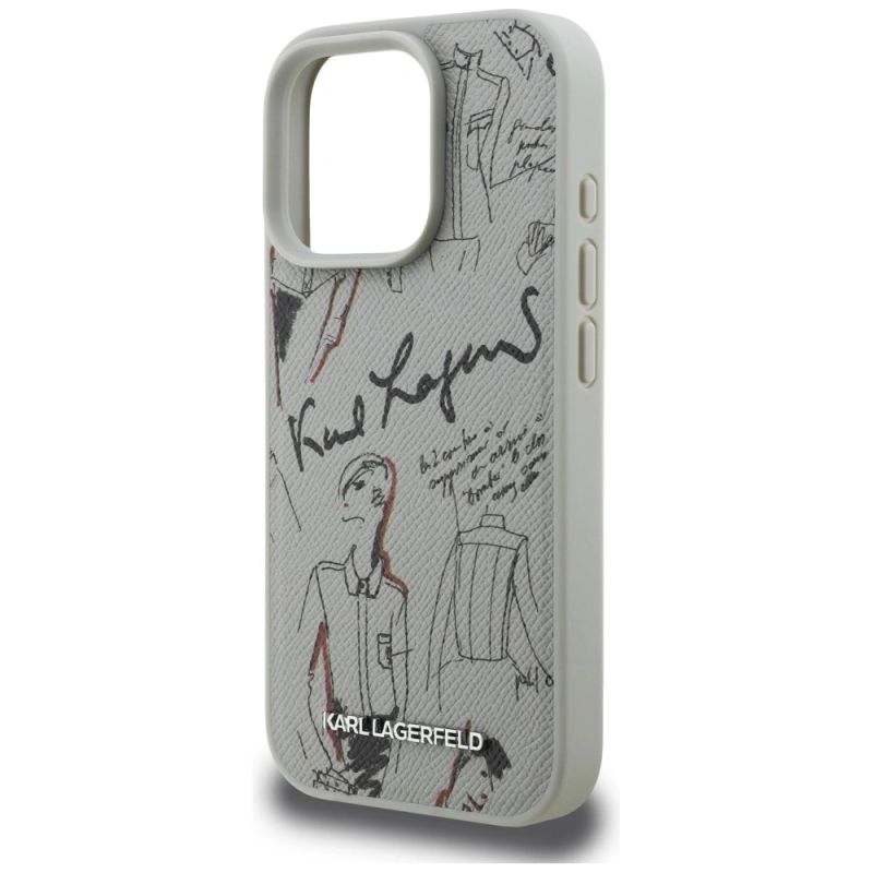 Karl Lagerfeld Grained Pattern & Logo MagSafe Case for iPhone 16 Pro - Gray