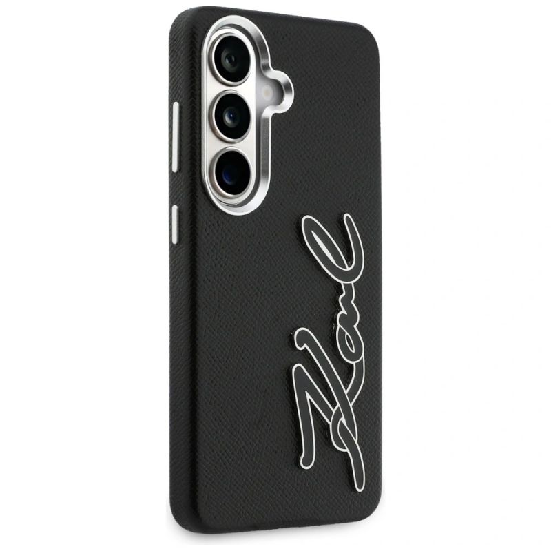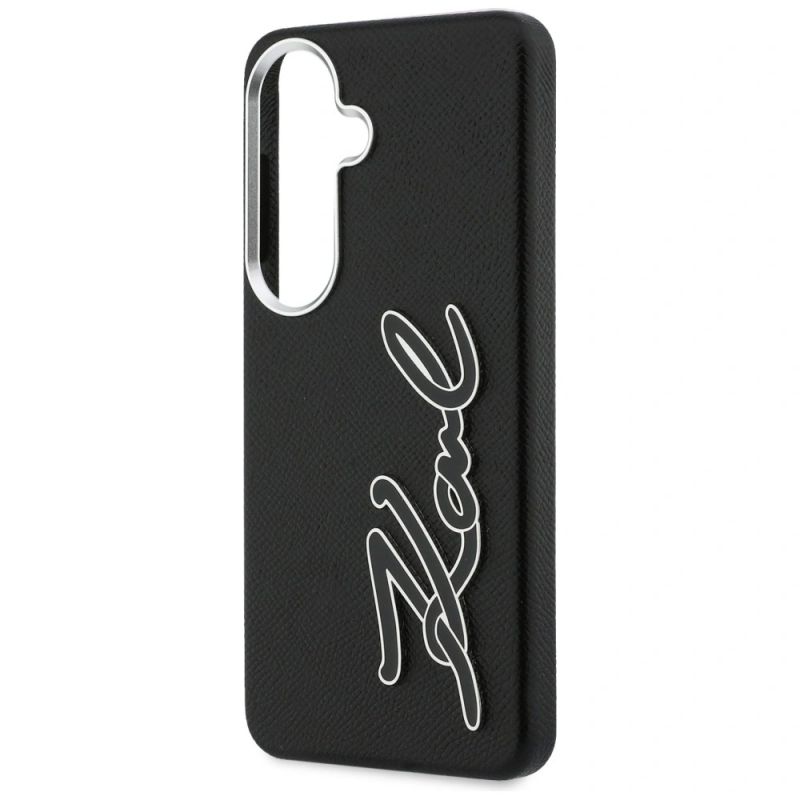 Karl Lagerfeld Grained Signature Metal Resin Logo Case for Samsung Galaxy S26 - Black