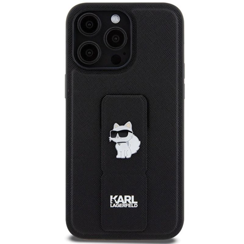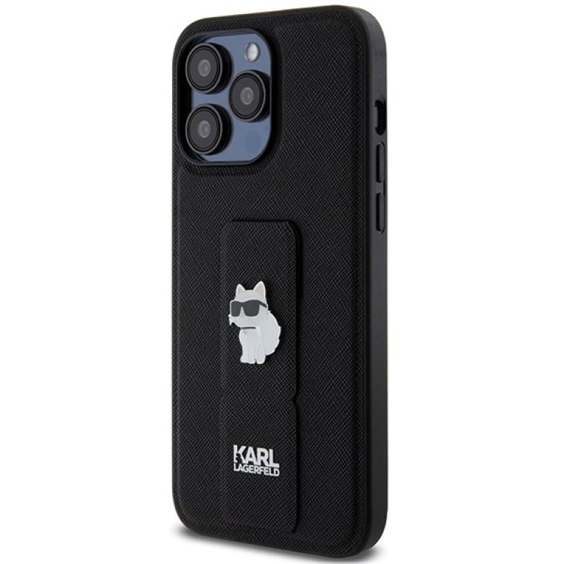Karl Lagerfeld Gripstand Saffiano Choupette Pins Case for iPhone 13 Pro / 13 - Black