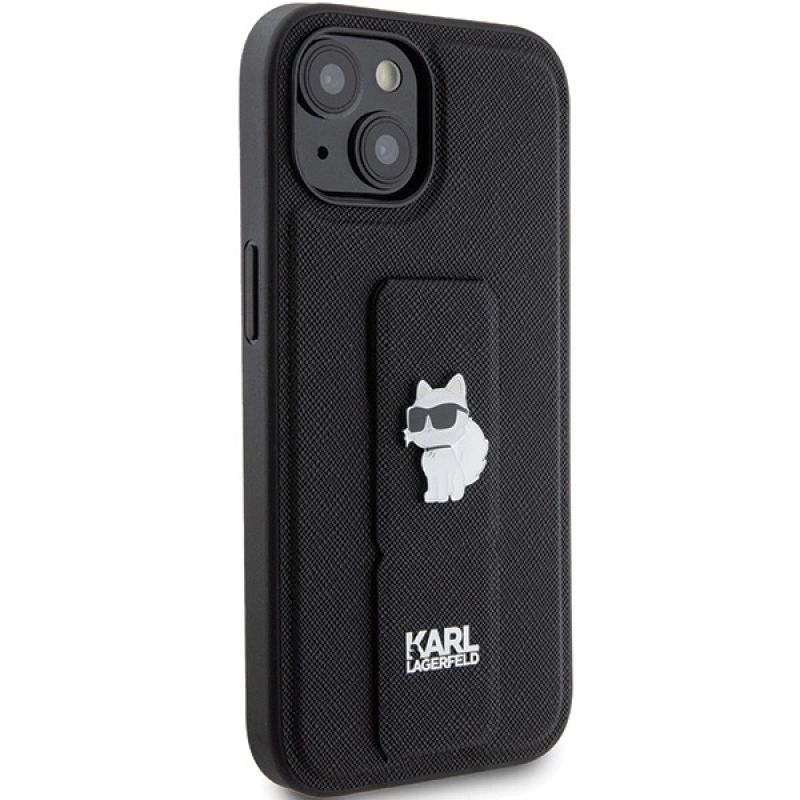 Karl Lagerfeld Gripstand Saffiano Choupette Pins case for iPhone 15 - black