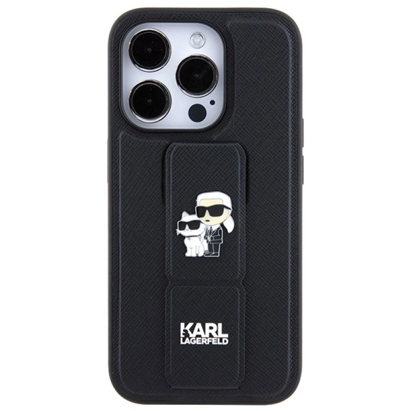 Karl Lagerfeld Gripstand Saffiano Karl&Choupette Pins case for iPhone 13 Pro / 13 - black