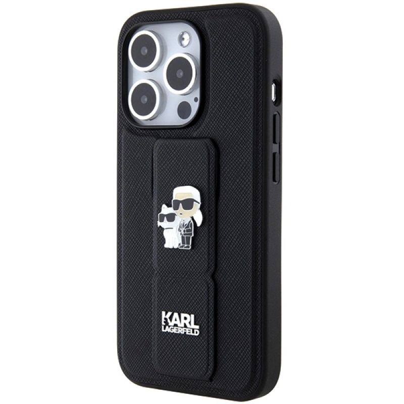 Karl Lagerfeld Gripstand Saffiano Karl&Choupette Pins case for iPhone 14 Pro - black