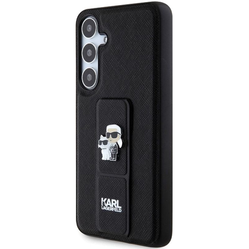 Karl Lagerfeld Gripstand Saffiano Karl&Choupette Pins case for Samsung Galaxy S24+ - black