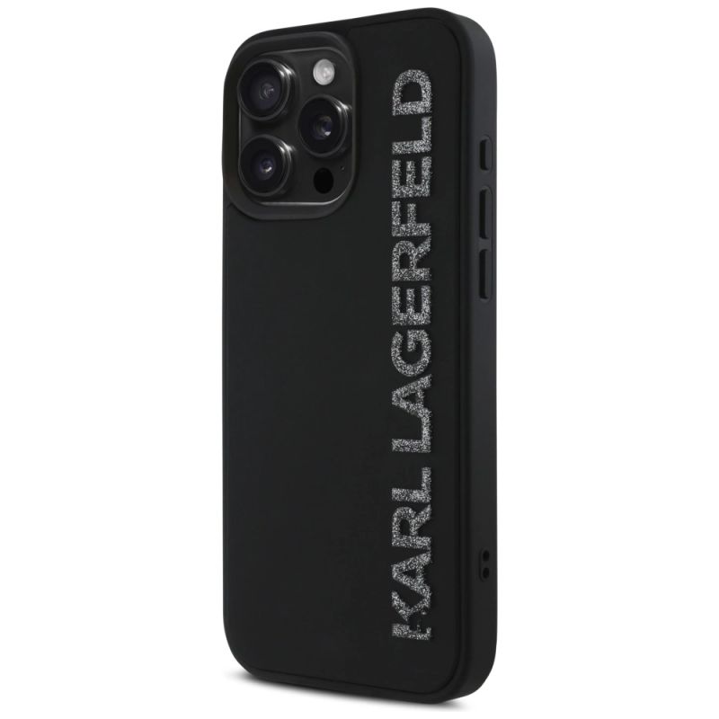 Karl Lagerfeld HC 3D Rubber Elongated Glitter iPhone 16 Pro Case - Black