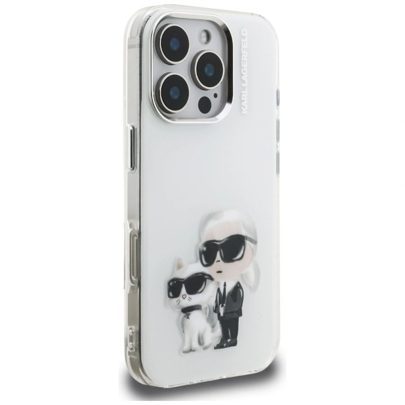 Karl Lagerfeld IML Aquarelle Karl & Choupette & Logo Case for iPhone 16 Pro Max - White