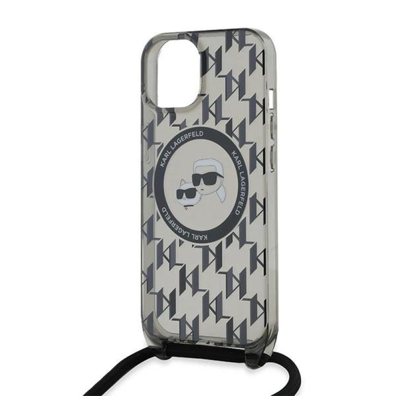 Karl Lagerfeld IML Crossbody Monogram Karl & Choupette Head MagSafe Case for iPhone 15 / 14 / 13 - Black