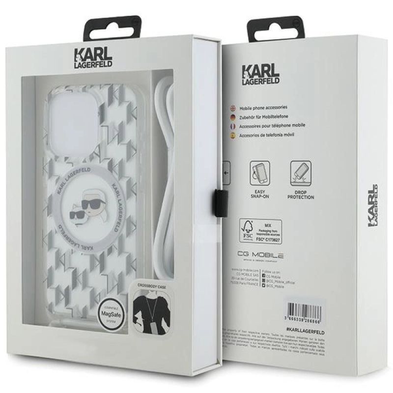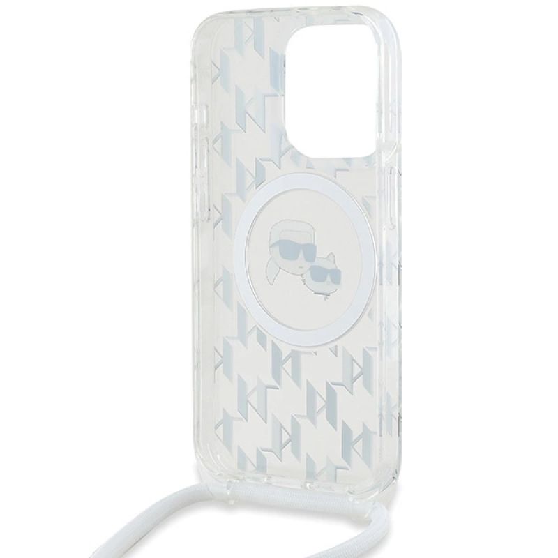 Karl Lagerfeld IML Crossbody Monogram Karl & Choupette Head MagSafe Case for iPhone 15 Pro - Transparent