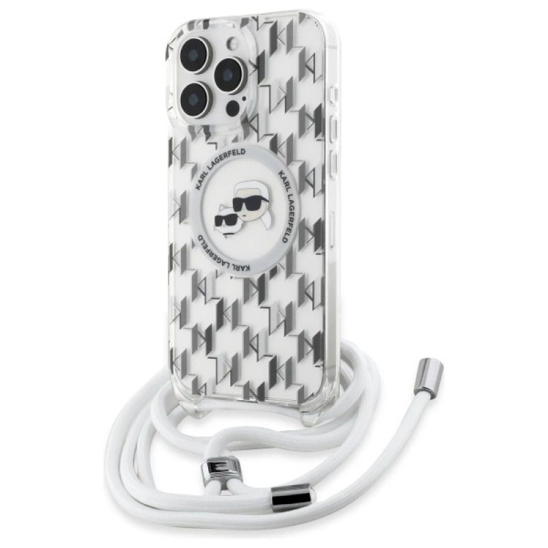 Karl Lagerfeld IML Crossbody Monogram Karl & Choupette Head MagSafe Case for iPhone 16 Pro - Clear