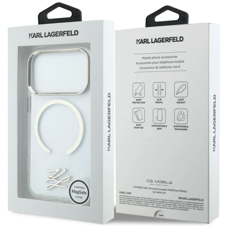 Collection Karl Lagerfeld IML KL Script Logo MagSafe case Type Hardcase Material TPU / PC Color Transparent Compatibility iPhone 17 Pro| Name | Details |