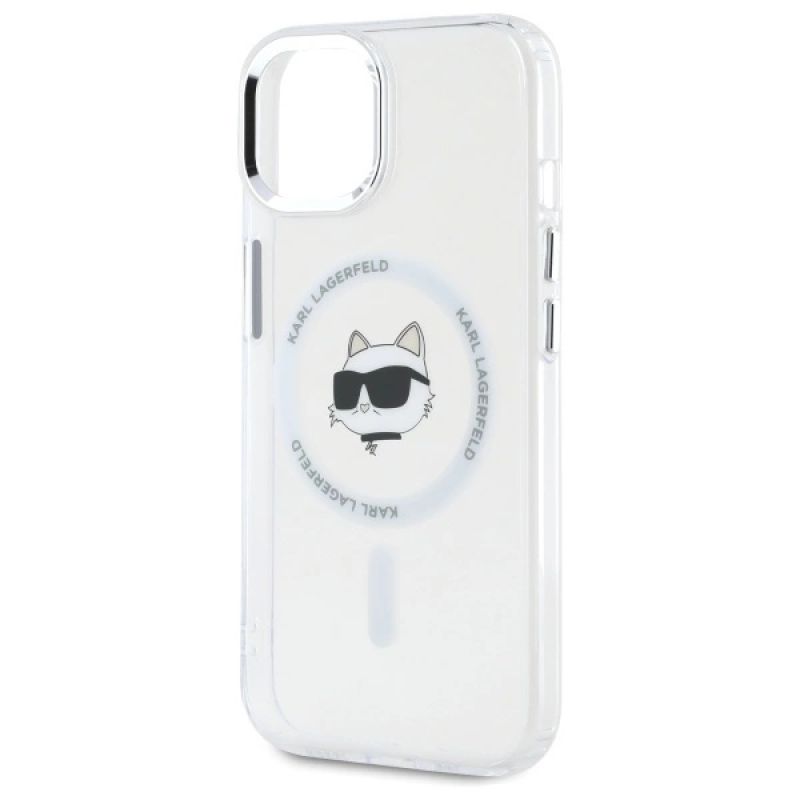 Karl Lagerfeld IML Metal Choupette Head MagSafe iPhone 15 Plus Case - White
