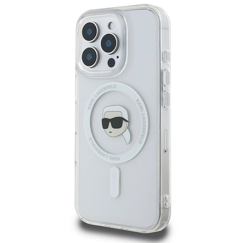 2. Karl Lagerfeld IML Metal Karl Head MagSafe Case for iPhone 16 Pro - White