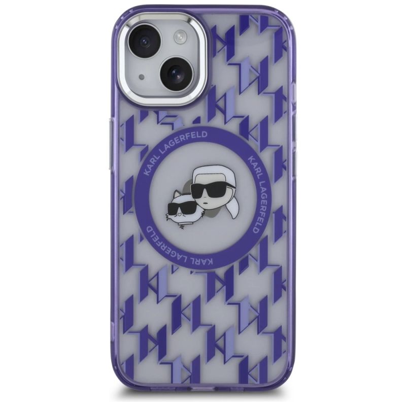 Karl Lagerfeld IML Monogram Karl & Choupette Head MagSafe iPhone 15 Case - Purple