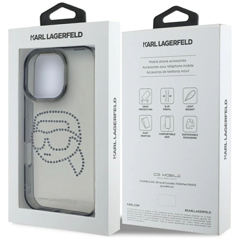 Karl Lagerfeld IML Rhinestones Karl Head Case for iPhone 16 Pro Black