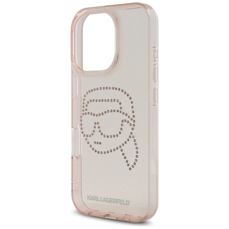 Collection IML Rhinestones Karl Head Type Hardcase Material TPU/PC Color Pink Compatibility iPhone 16 Pro 6.3"| Name | Details |