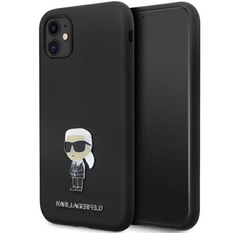 Karl Lagerfeld KLHCN61SMHKNPK case for iPhone 11 / Xr - black Silicone Ikonik Metal Pin