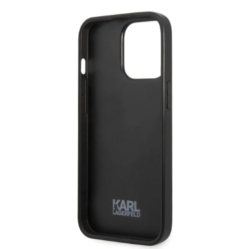 The case is made of high-quality eco saffiano leather and decorated with the initials of Karl Lagerfeld, the whole is completed with a 3D patch referring to the legendary designer.