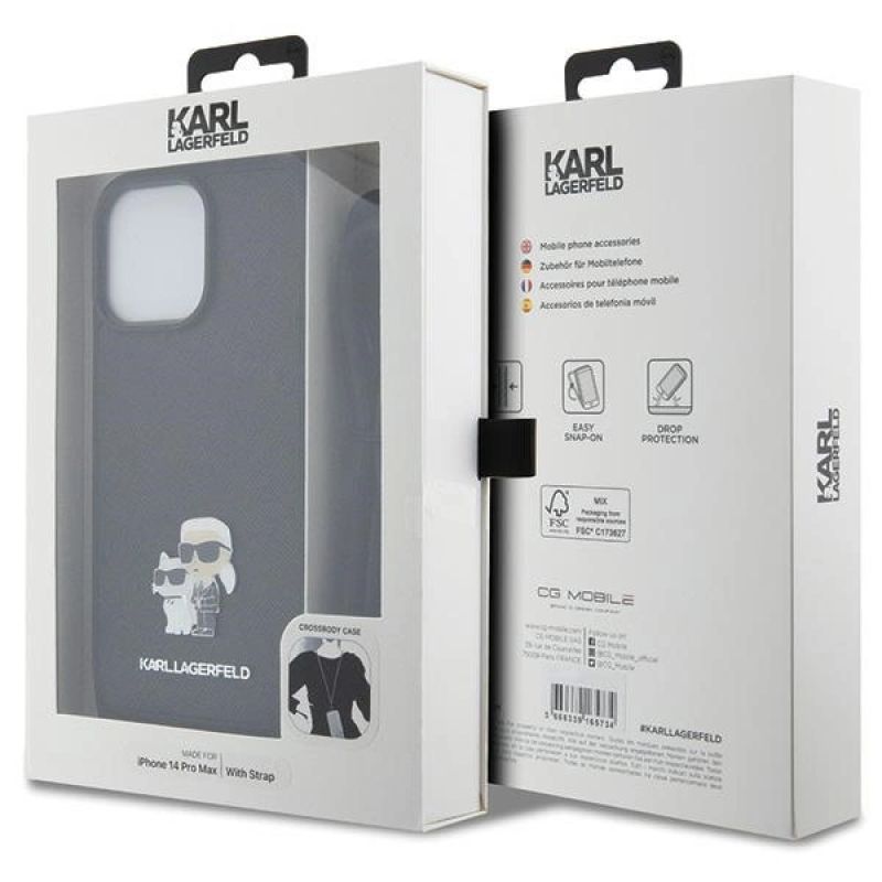 Karl Lagerfeld KLHCP14XSAKCPSK case for iPhone 14 Pro Max 6.7" hardcase - black Crossbody Saffiano Metal Pin Karl&Choupette