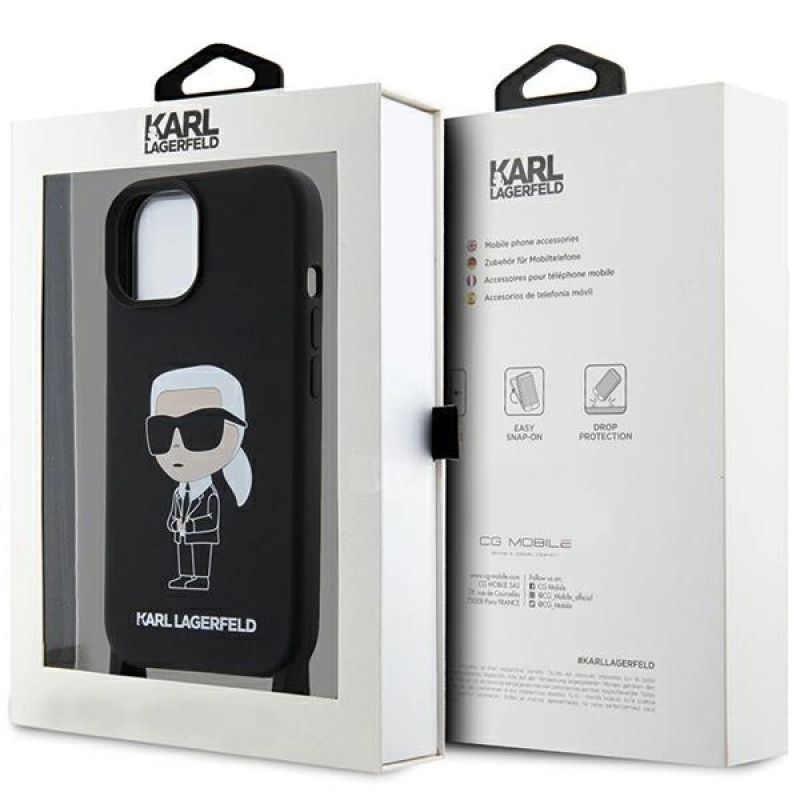 Karl Lagerfeld KLHCP15SSCBSKNK iPhone 15 6.1" hardcase black/black Crossbody Silicone Ikonik