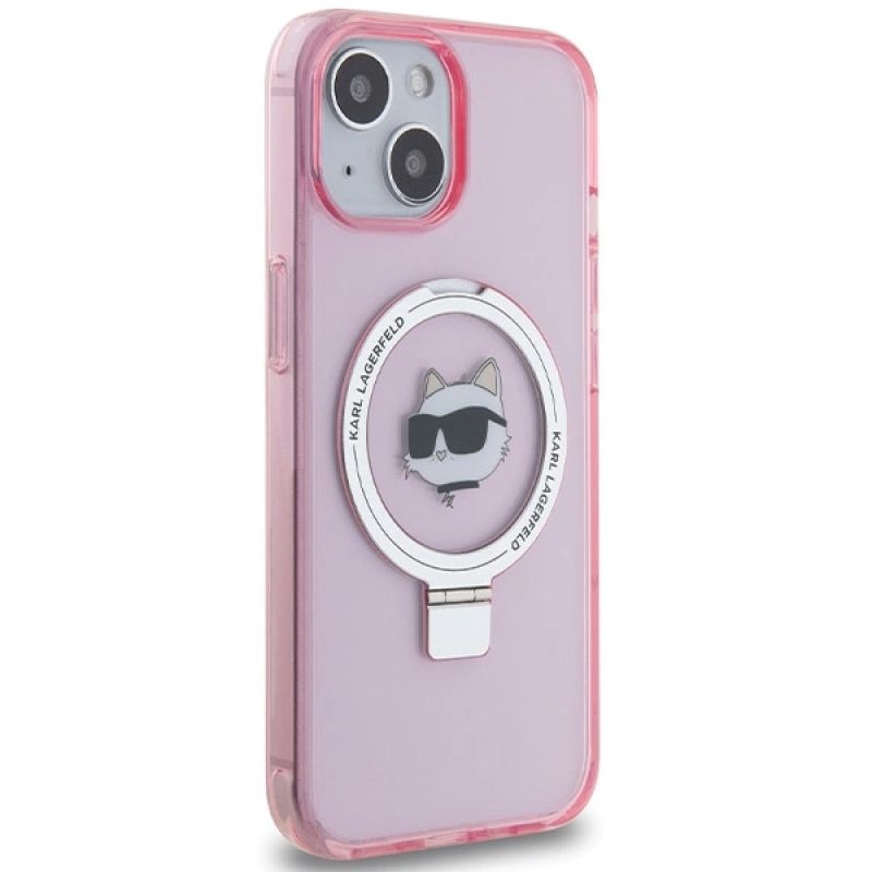 Karl Lagerfeld KLHMP15SHMRSCHP iPhone 15 6.1" pink/pink hardcase Ring Stand Choupette Head MagSafe