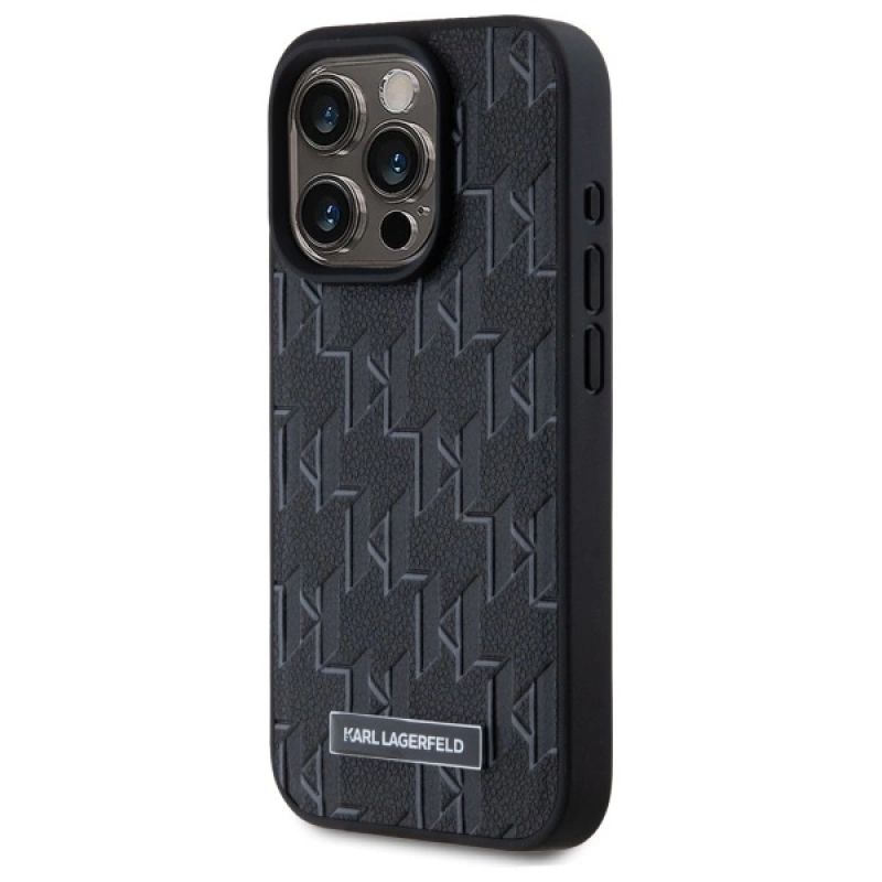 Karl Lagerfeld Leather Monogram Metal Logo MagSafe iPhone 15 Pro Case - Black