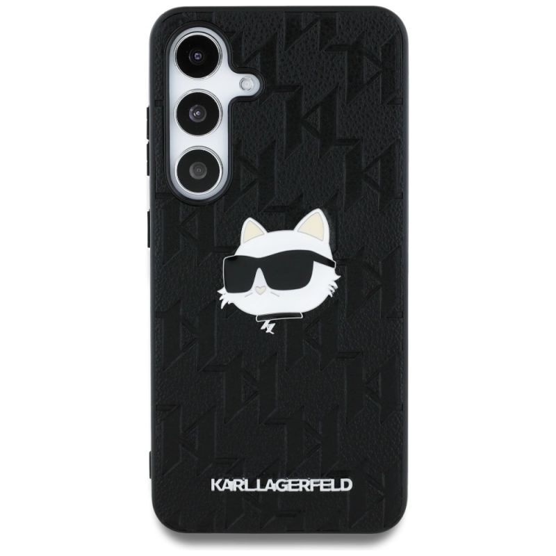 Karl Lagerfeld Leather Monogram Pin Logo Choupette Head Samsung Galaxy S25 Case Black