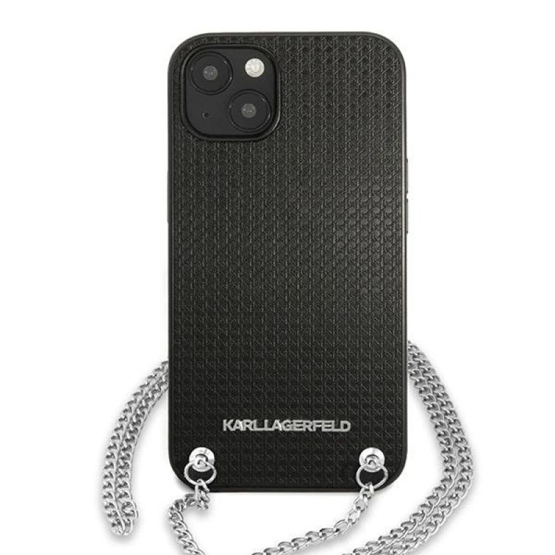 Karl Lagerfeld Leather Textured and Chain Case for iPhone 13 / 14 / 15 6.1" - Black