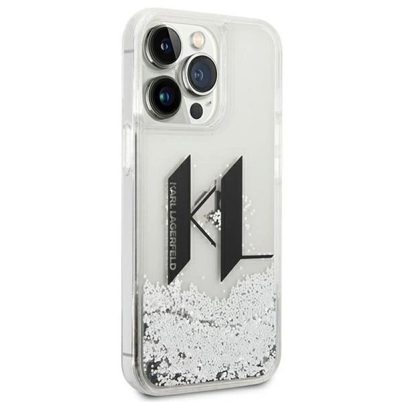 Karl Lagerfeld Liquid Glitter Big KL case for iPhone 14 Pro - silver