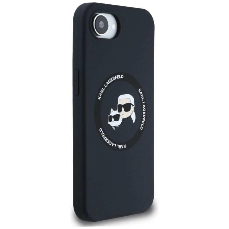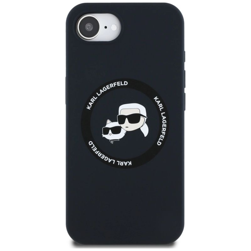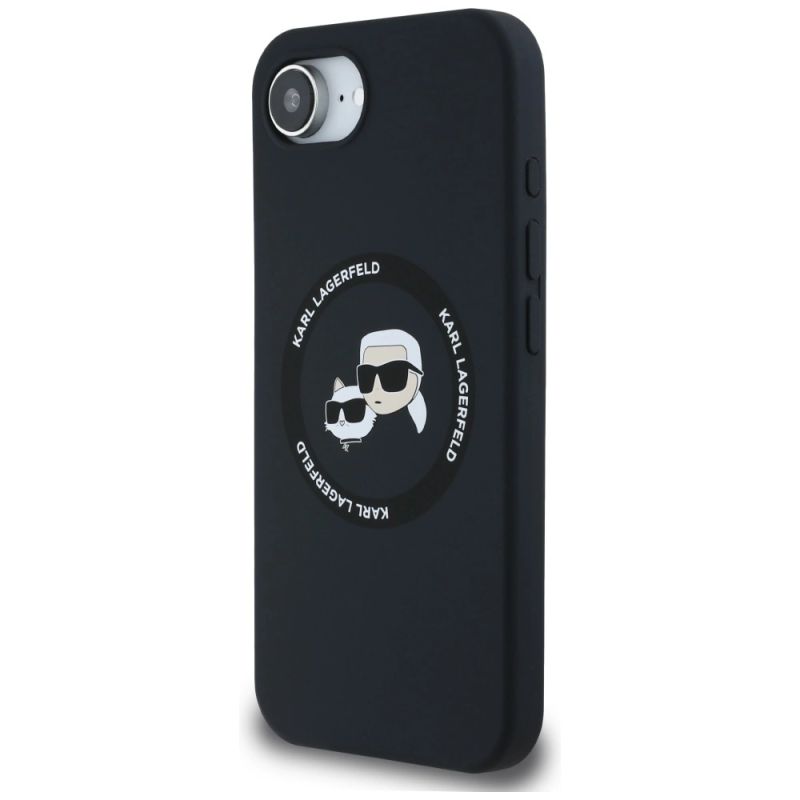 Karl Lagerfeld Liquid Silicone Karl & Choupette Heads Case with MagSafe for iPhone 16e - Black