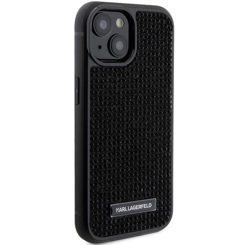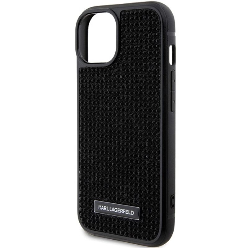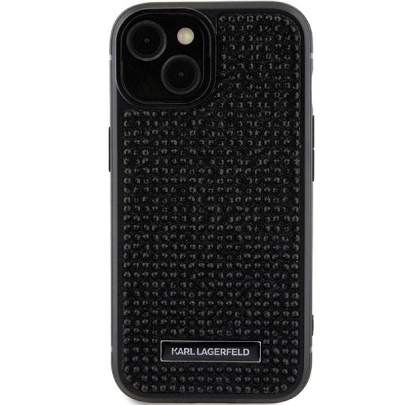 Karl Lagerfeld Rhinestone Logo Metal Plate case for iPhone 15 - black