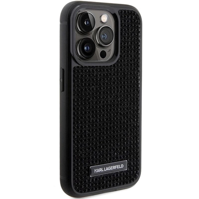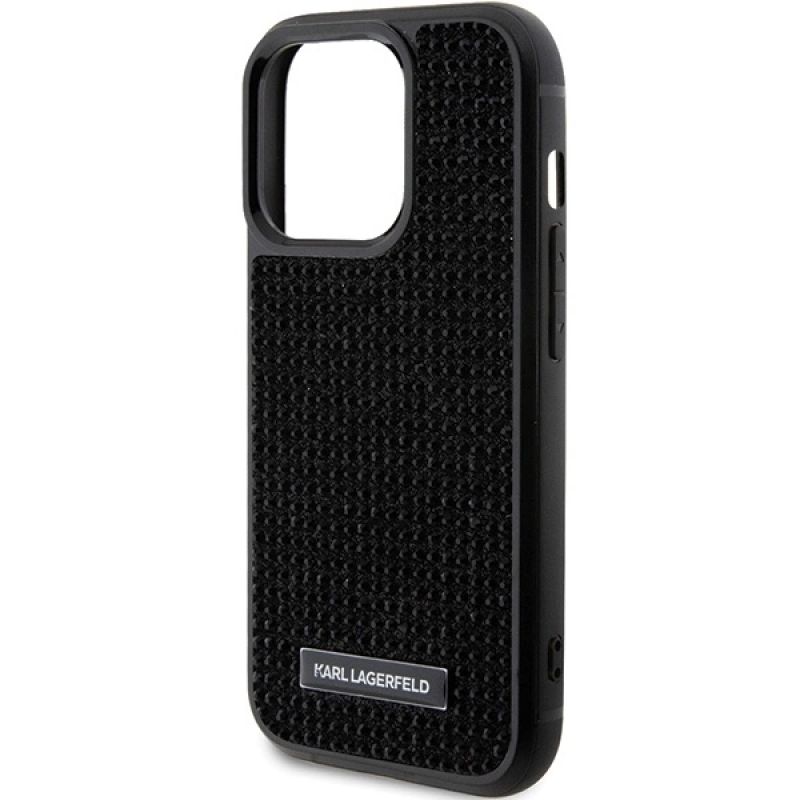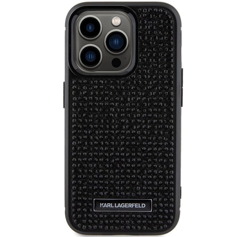 Karl Lagerfeld Rhinestone Logo Metal Plate case for iPhone 15 Pro Max - black