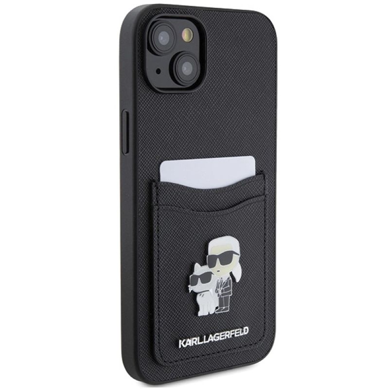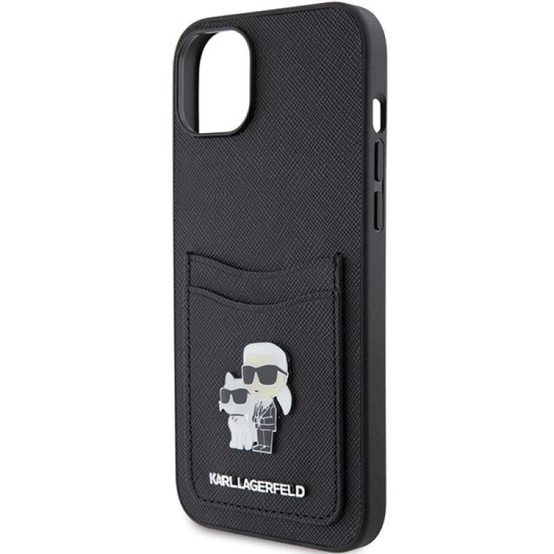 Karl Lagerfeld Saffiano Cardslot Karl&Choupette Metal Pin case for iPhone 15 - black