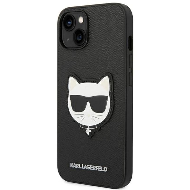Karl Lagerfeld Saffiano Choupette Head Patch Case for iPhone 14 Plus - Black
