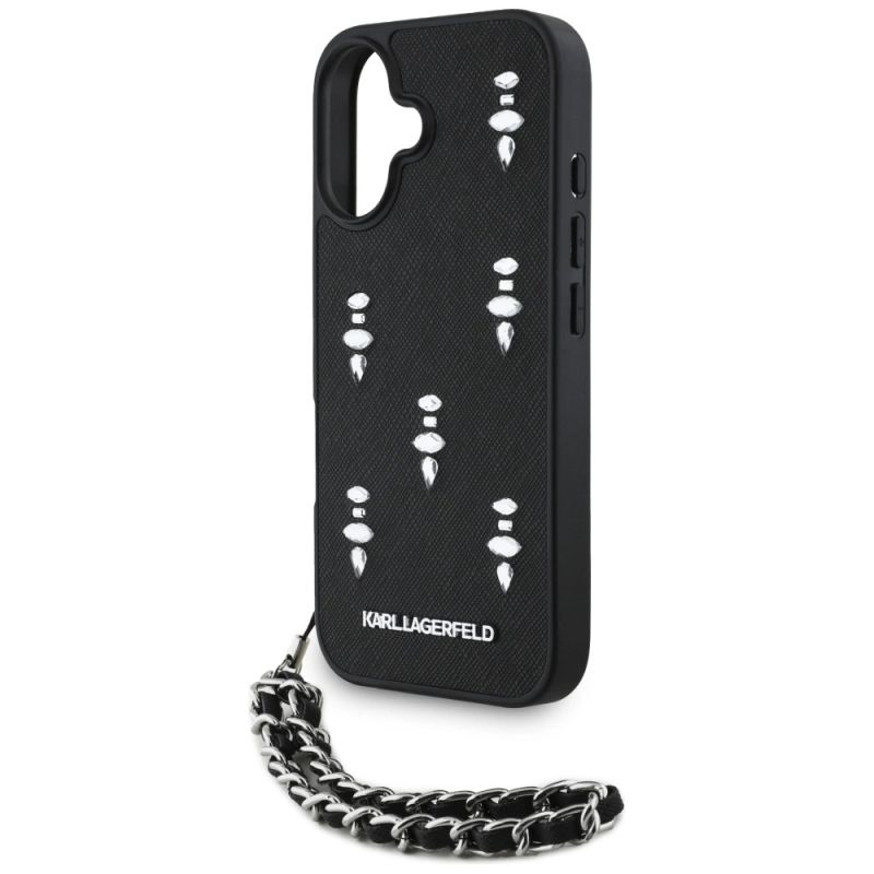 Karl Lagerfeld Saffiano Crystals w/Chain iPhone 16 Case - Black