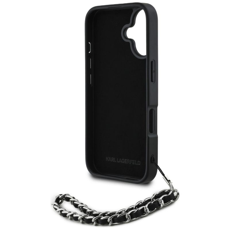 Collection Karl Lagerfeld Saffiano Crystals Case w/Chain Type Hardcase Material TPU / PC / Eco-leather Color Black Compatibility iPhone 16 6.1"| Name | Details |