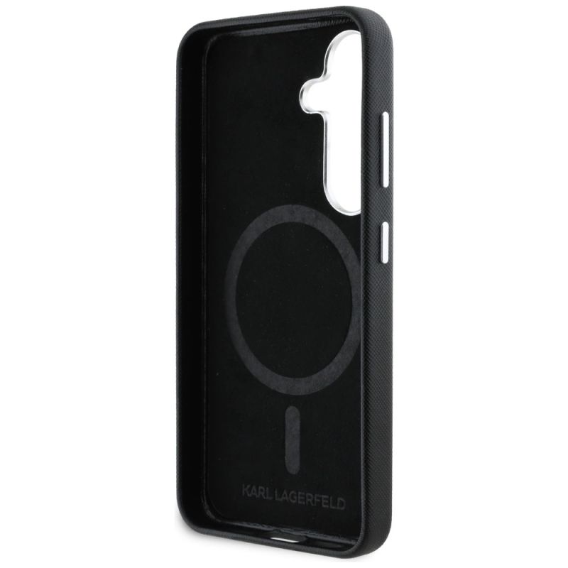 Karl Lagerfeld Saffiano Full Wrapped Elongated Metal Logo MagSafe Case for Samsung Galaxy S25 - Black